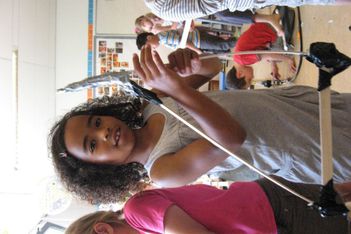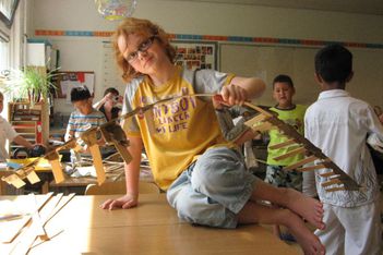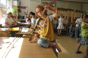 Alexander: " Ik heb vorige keer een vleugel gemaakt, maar ik vind hem een beetje raar. Ik vind het net een kam. En ik ben er klaar mee. Kijk zo is het een kam, kijk maar. En zo zijn het vleugels".