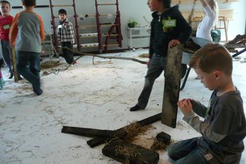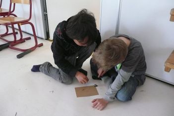 De kinderen bouwen 'het plekje' weer op. Om het sterker te maken hebben de kinderen superlijm nodig. Irma heeft geen superlijm, maar wel superplakband.