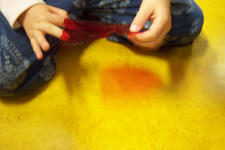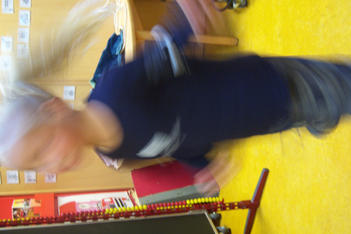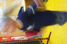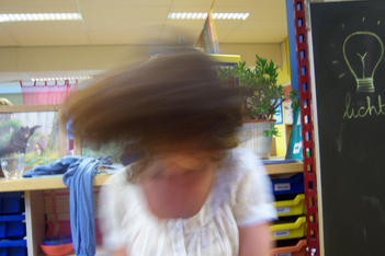 In ieder geval niet teveel vragen, willen jullie ..... doen? Want ze willen het nooit. Maar binnen het thema wel de ruimte krijgen. Kleine experimenten.. Duncan wil ook heel graag grote bewegingen maken.