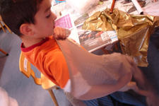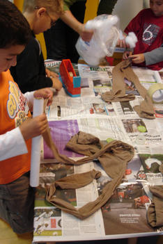 Omdat de kinderen dit keer met panty’s, vulmateriaal en allerlei nieuw verzameld materiaal kunnen werken, worden ze weer enthousiast en ontstaat er een heel ander soort armen. Een paar kinderen werken aan de kop van de octopus en maken er ogen en een mond aan. Er verschijnen zelfs tanden en inktdraden!