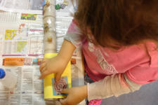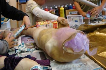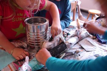 De kinderen gaan weer in groepjes aan de slag. We laten ze weer een arm van de octopus maken.