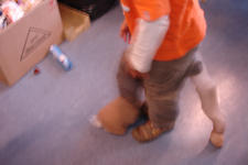 We gaan vandaag verder met onze octopus. We beginnen de dag met de grote kop van papier maché. Hij is nu goed droog en we kunnen de skippybal die erin zit leeg laten lopen en eruit halen. De kinderen vinden dit erg spannend en willen allemaal even met hun hand in de kop aan de skippybal voelen.