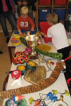 Terug op school verteld elk kind waarom ze voor hun object hebben gekozen. Het meisje dat de douchekop had gekozen vertelde dat dat nodig was om de boom water te geven en omdat vogels ook moesten douchen. Ja maar de vogels kunnen er ook muziek mee maken als ze er met hun snavel tegenaan tikken, opperde een van de jongens.